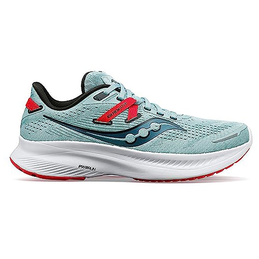 - It’s comfort and support over everything with the Guide 16. Perfectly balanced with cushioning where you need it, this Saucony Guide 16 Running Shoe is truly built to do it all. Experience a personalized fit and feel the minute you put it on.