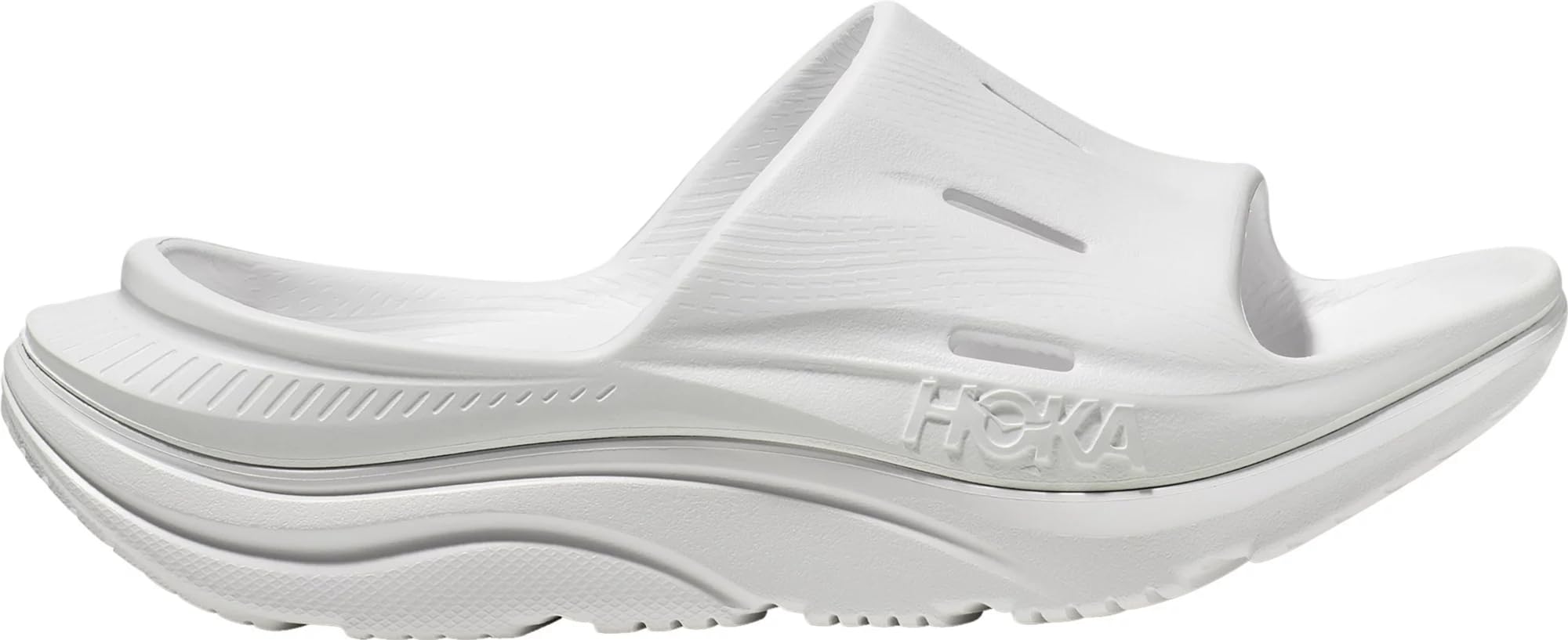 • Orthotic-friendly design: HOKA ONE ONE ORA Recovery slides are engineered with a plush, cushioned footbed and offer a stable, wide platform to accommodate custom orthotics if needed