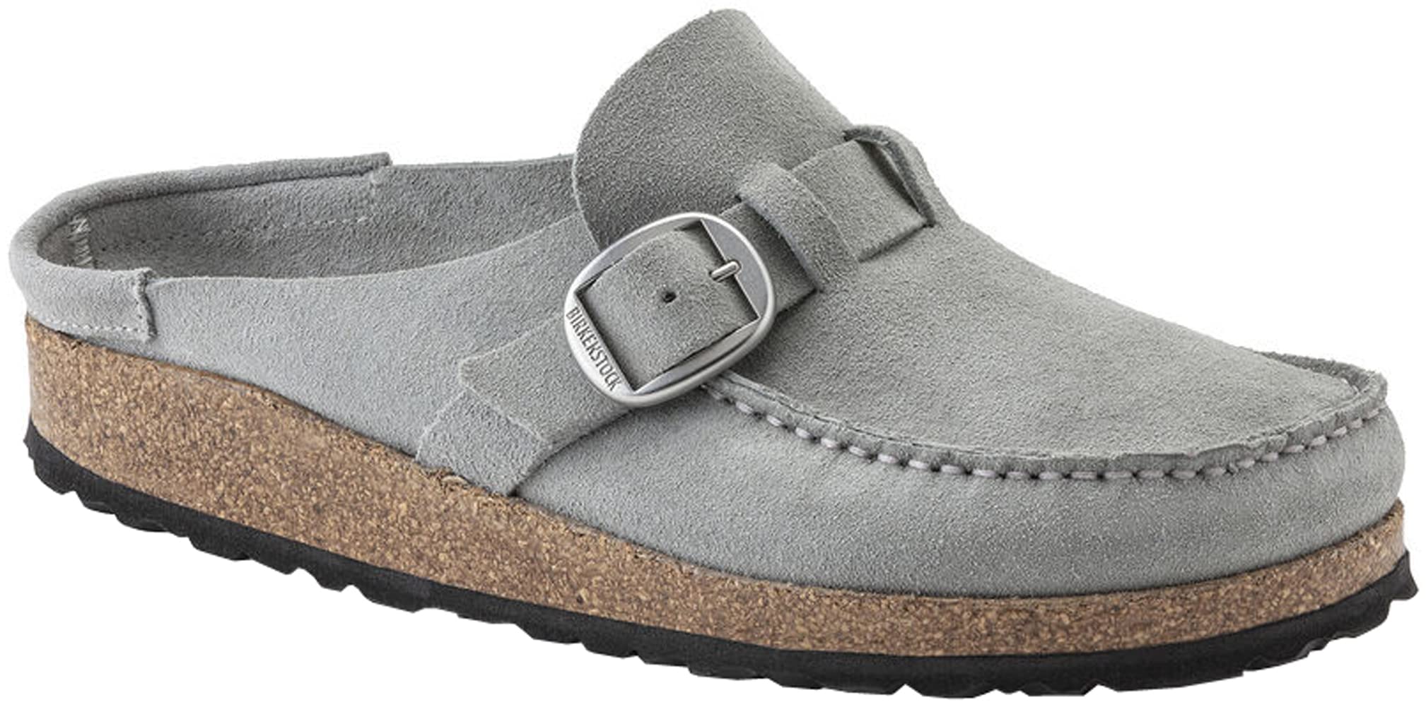 • Birkenstock, Buckley Shearling Clog - Narrow Width. Your favorite Birkenstock comfy clog style - now with a soft shearling lining! This casual clog has a deep heel cup that helps to distribute body weight evenly. Suede upper with classic loafer styling Slip on style with buckle strap for a secure fit Suede covered cork and latex footbed molds to your foot for comfort and support Deep heel cup helps distribute body weight evenly Lightweight EVA outsole Please be advised that the Birkenstock Narrow width accommodates both traditional narrow and medium widths. Regular accommodates Regular to Wide.. Heel Height of 0.75 inches