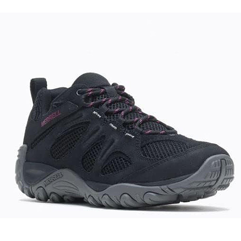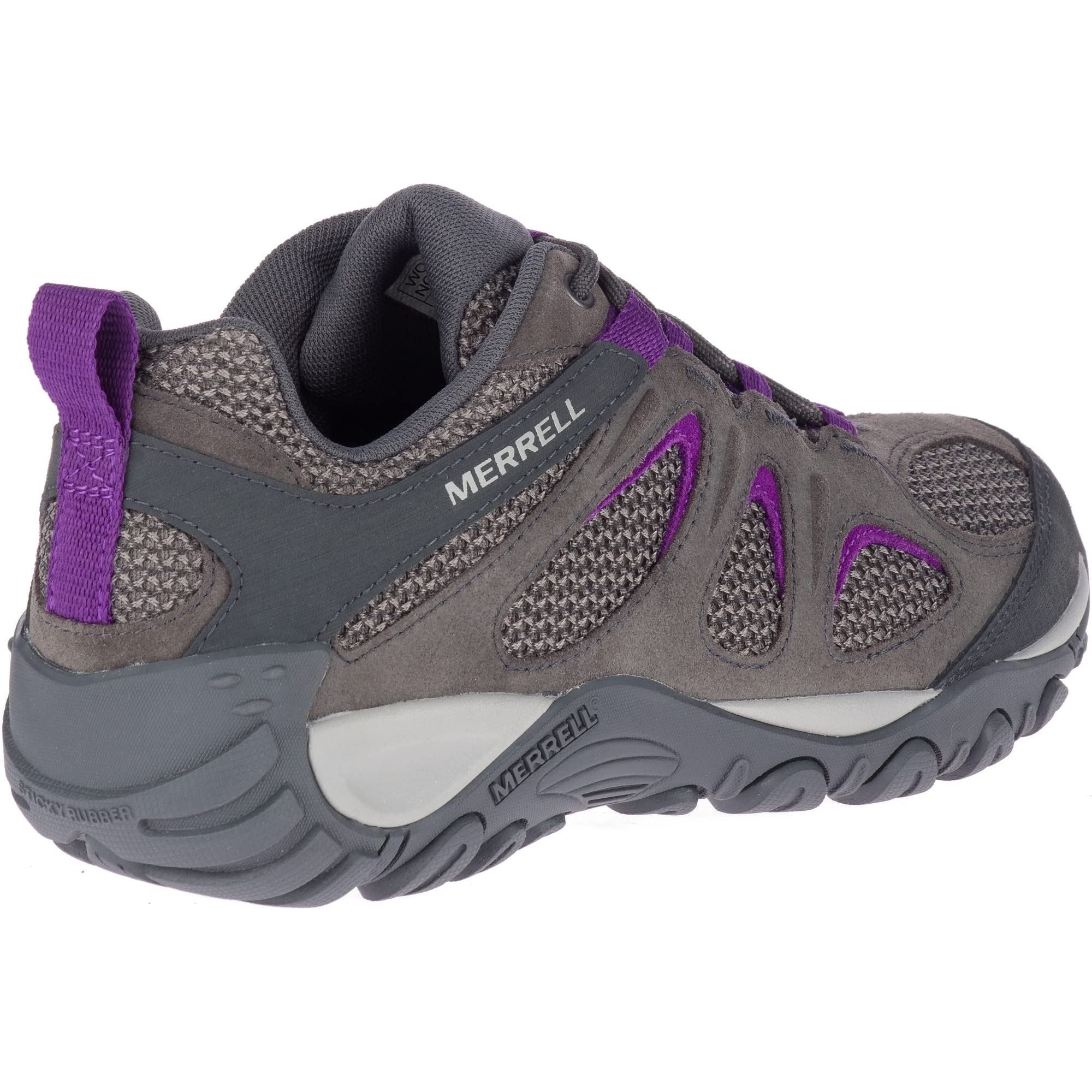 • This easy on/easy off all-around hiker features suede for durability and abrasion-resistant mesh panels for breathability. FEATURES Suede and textile upper Metal hook and lacing eyelet for secure lacing Bellows tongue keeps debris out Protective rubber toe cap M Select FRESH antimicrobial agents reduces shoe odor Molded TPU heel counter for added stability Breathable mesh lining Kinetic Fit BASE insole is contoured like your foot and provides flexible, intuitive support for connected and protected movement Molded nylon arch shank Merrell Air Cushion in the heel absorbs shock and adds stability M Select GRIP outsole tunes each outsole with durable traction that grips when and where you need it 4mm Lug Depth Weight: 1lb 5oz/592g