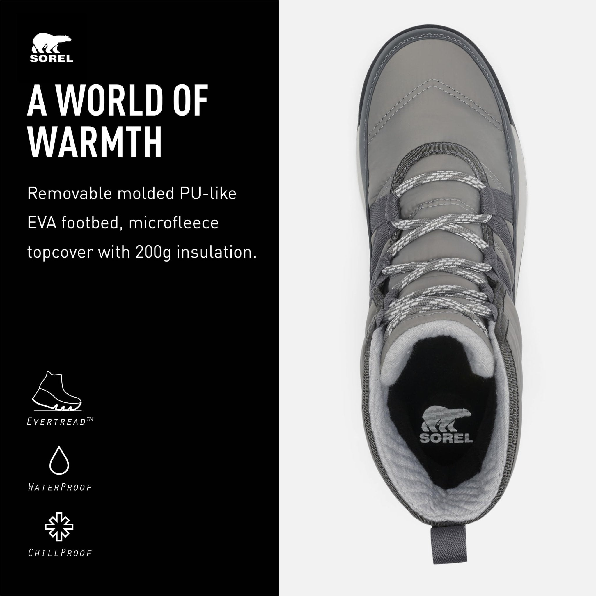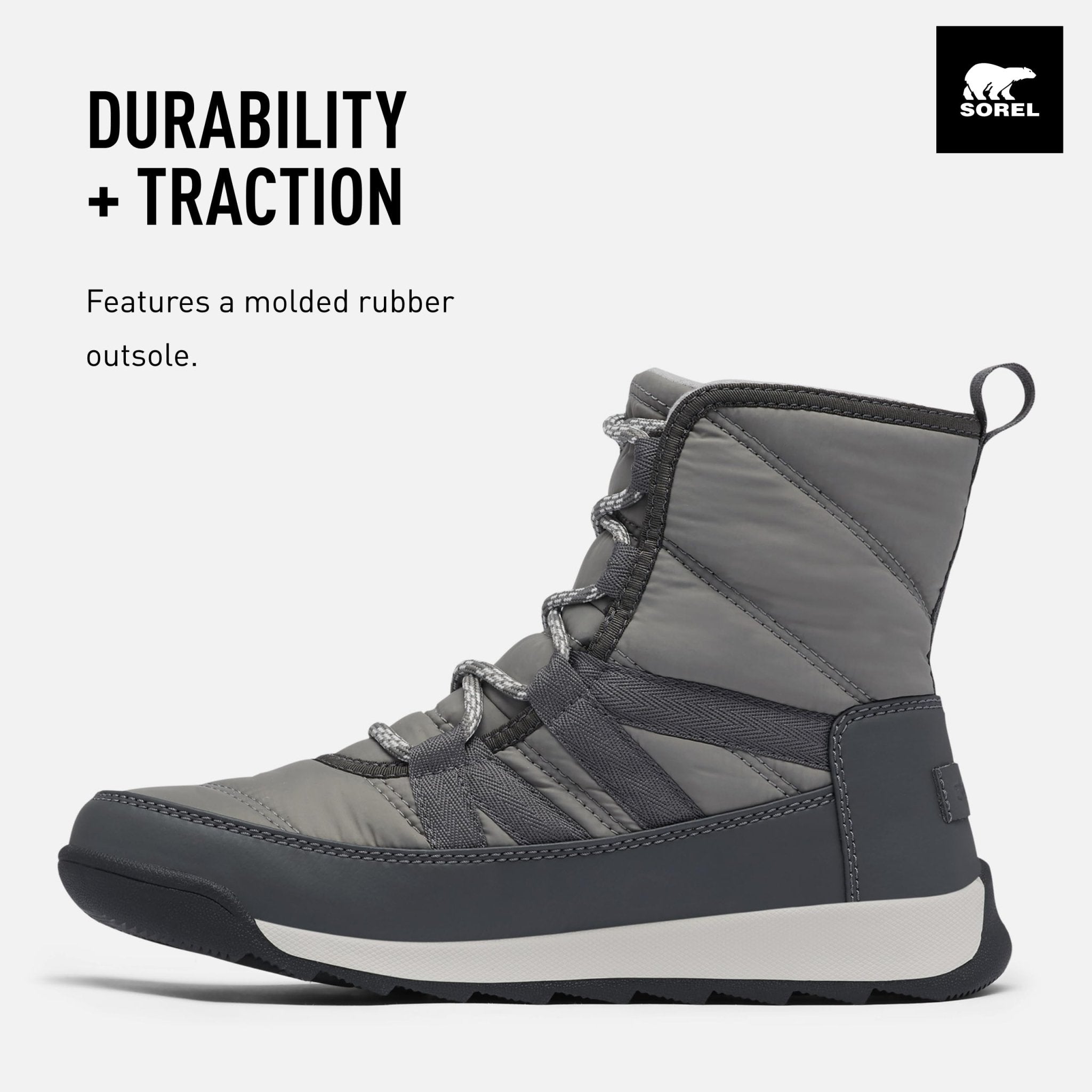 • Winter weather won't stand a chance against the SOREL Women's Whitney II Short Lace Waterproof Boot. These sporty winter boots are designed to keep your feet warm and dry, no matter the weather. Featuring a waterproof nylon upper with PU-coated synthetic overlays and a waterproof bootie construction, these boots are ready to tackle even the toughest of winter conditions. Lined with warm microfleece and filled with 200g insulation, the Whitney II Short Lace WP boots are the perfect solution for keeping your feet toasty on even the coldest of days. The removable molded PU-like EVA footbed with a microfleece topcover provides cushioned comfort, while the molded rubber construction ensures long-lasting durability. These boots are perfect for winter activities and outdoor adventures. The extra-grip traction ensures slip-proof strolling. The nylon heel pull tab makes them easy to put on and take off, while the lightweight fit ensures all-day comfort. Stay cozy and stylish this winter. Founded in 1962, SOREL combines expert craftsmanship and of-the-moment design to create all-season footwear. What began decades ago with premium boots, crafted with an unparalleled balance of construction and protection, is now a brand dedicated to both functionality and fashion. Here at SOREL, we believe you are your most powerful tool and the determination you find within is an unstoppable force. SOREL challenges the status quo by creating unexpected footwear that pushes the boundaries of function-first fashion. We stay in motion so you can push yourself forward.