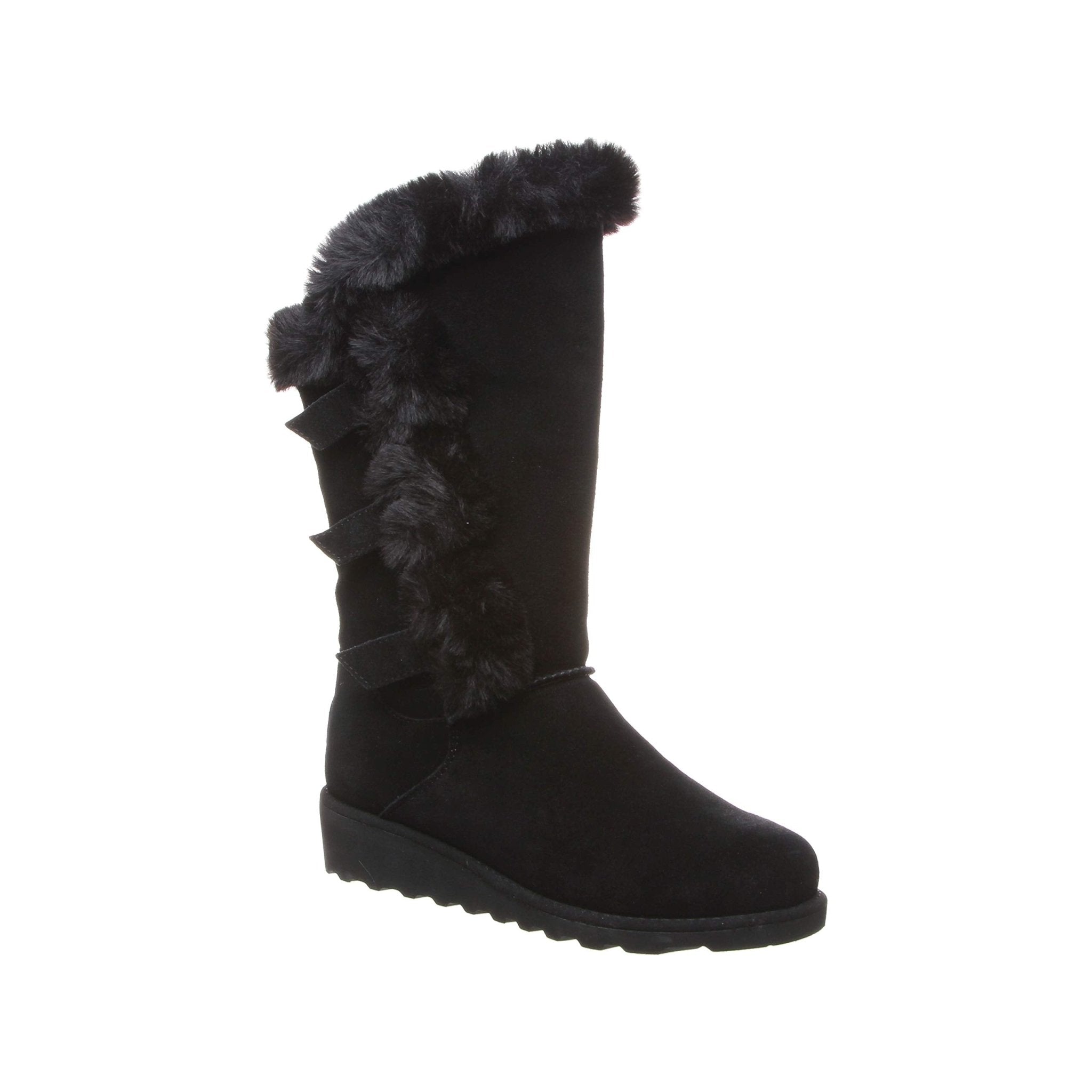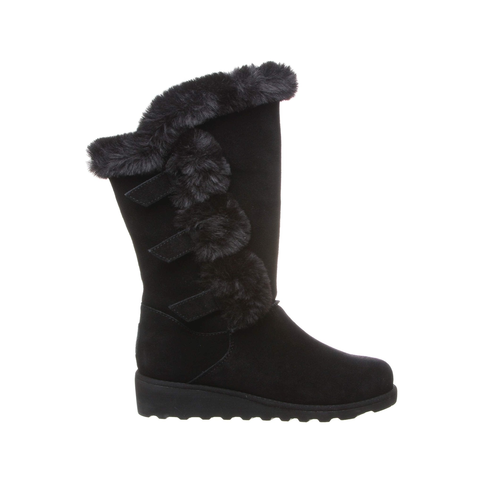 • SUEDE WITH FAUX FUR UPPER: This boot features three fur covered buckles on the lateral side and wool blend lining that regulates body temperature to keep your feet warm. The removable sheepskin comfort footbed provides additional softness and reduces foot fatigue.